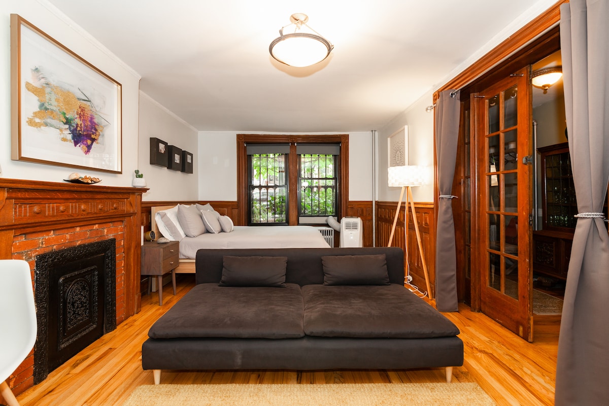 New for 2026: Airbnb now displays the total cost as a nightly rate. This price already includes our $100 cleaning fee and any applicable Airbnb fees, spread across your stay for full pricing transparency—no surprises at checkout. This elegant one-bedroom guest suite sits on the garden level of an owner-occupied brownstone in Prospect Heights, blending Old World charm with modern Brooklyn, near Prospect Park, top dining, and cultural landmarks.