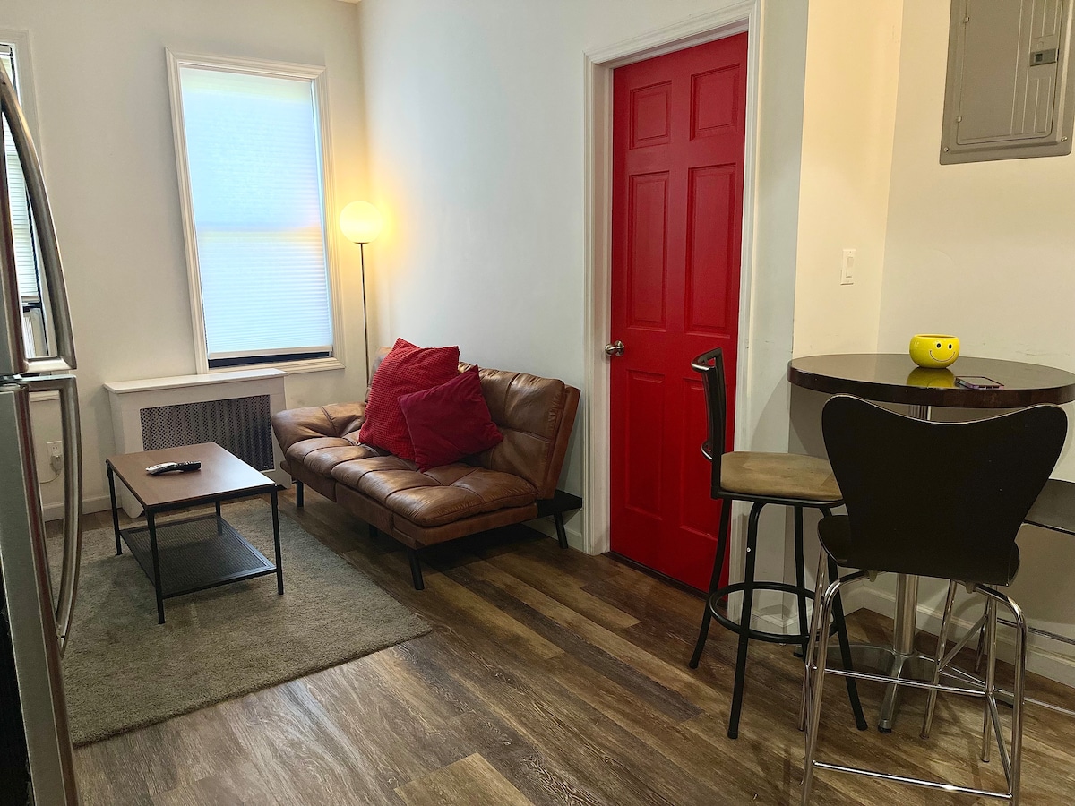 Experience the tranquil and chic ambiance of this newly renovated studio apartment in South Slope, south of Park Slope. A queen size bed & sofa bed, accommodating up to four (4) guests. The unit is fully equipped with modern conveniences such as a smart TV, split A/C system, washer/dryer, and a stylish kitchen. The charming design of the apartment features exposed brick walls, high ceilings, and a neighborhood that perfectly complements the space, evoking the essence of old Brooklyn.