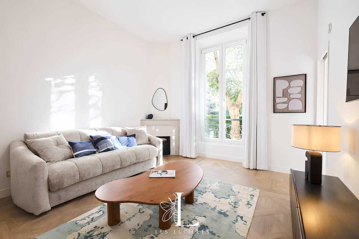 Beautiful, spacious 47m² apartment, fully renovated with high-quality materials, close to all shops and restaurants and located a 14-minute walk (1km) from the Palais des Festivals. On the 5th floor with elevator access, this one-bedroom apartment will charm you with its modern features and peaceful balcony. Key collection is available at a local shop (2-minute walk) until 11:30 pm. After this time, a €20 surcharge will apply.