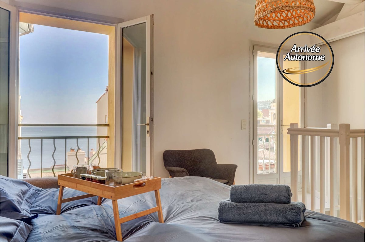 位于老安蒂布(Old Antibes)中心地带的阳光明媚的阳台房,配备空调,可欣赏美景