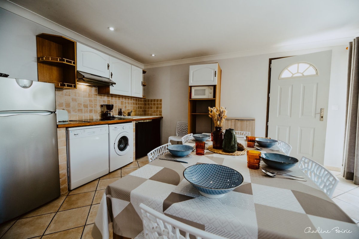 Studio cottage d'environ 20 m2 en rez de jardin avec terrasse privative, vue piscine et jardin. Petits déjeuners inclus 1 lit en 160x200cm. Salle de bain avec douche, wc, lavabo, serviettes et produits d'accueil Kichinette toute équipée ( frigo, micro onde, plaque vitrocéramique, évier, lave vaisselle, hotte) Climatisation TV écran plat LCD, Chaines satellites, canal plus Wifi gratuit dans la chambre et dans tout l'établissement. Accès à l'espace détente : piscine, transats, serviettes de bain
