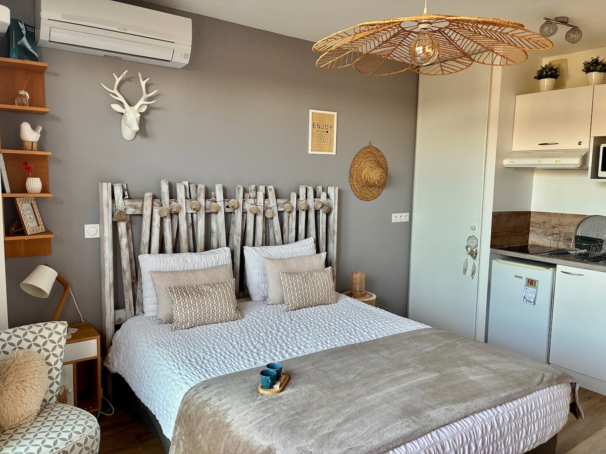 Appartement climatisé, d'une superficie de 40m2 avec mezzanine situé au RDC d'un immeuble d´un étage en cours, donnant sur une terrasse privative de 12m2, entièrement rénové et équipé avec des prestations de qualités. L'accès au loft inclus le passage par un couloir auquel vous accéder par des escaliers et la descente de 24 marches pour se retrouver dans un hébergement au calme absolu et lumieux.