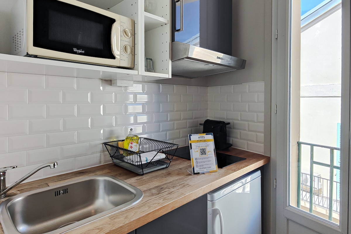 Bienvenue chez AMMI Vieux Nice ! 🏠 ✨ Aparthotel au cœur du Vieux Nice, le charme d'un studio avec le service d'un hôtel ! 🪜 Note : 1er étage sans ascenseur (15 marches). 🧳 Bagagerie gratuite avant/après séjour. ☕ Petit-déj : Chez Gaglio (au pied de l'hôtel) — Continental 10,90 € | Américain 16,90 € | Room service 10 €/pers. 🛡️ Staff 24h/7j et conciergerie sur place.