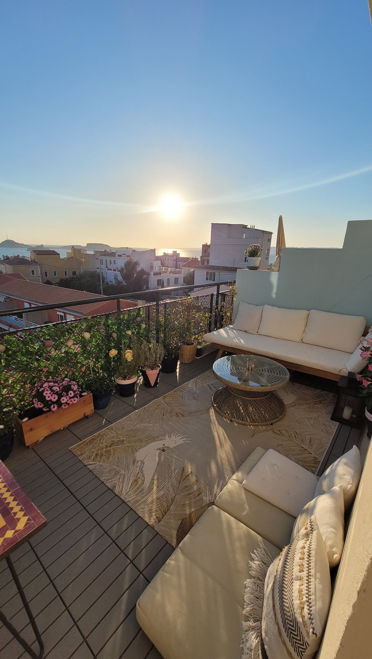 Sur les contreforts d’Endoume, à 3 minutes de la plage des Catalans, ce ravissant T2 niché au calme et entièrement rénové vous offre sa terrasse ensoleillée… au coeur d'un quartier authentique et central. Cet appartement atypique de 34m², tout juste rénové, est le lieu parfait pour profiter de Marseille tout au long de l’année. Cocooning assuré après la plage, à la fraîche, sur la terrasse… laissez vous tenter par son charme inimitable ! Climatisation, très belles prestations :)