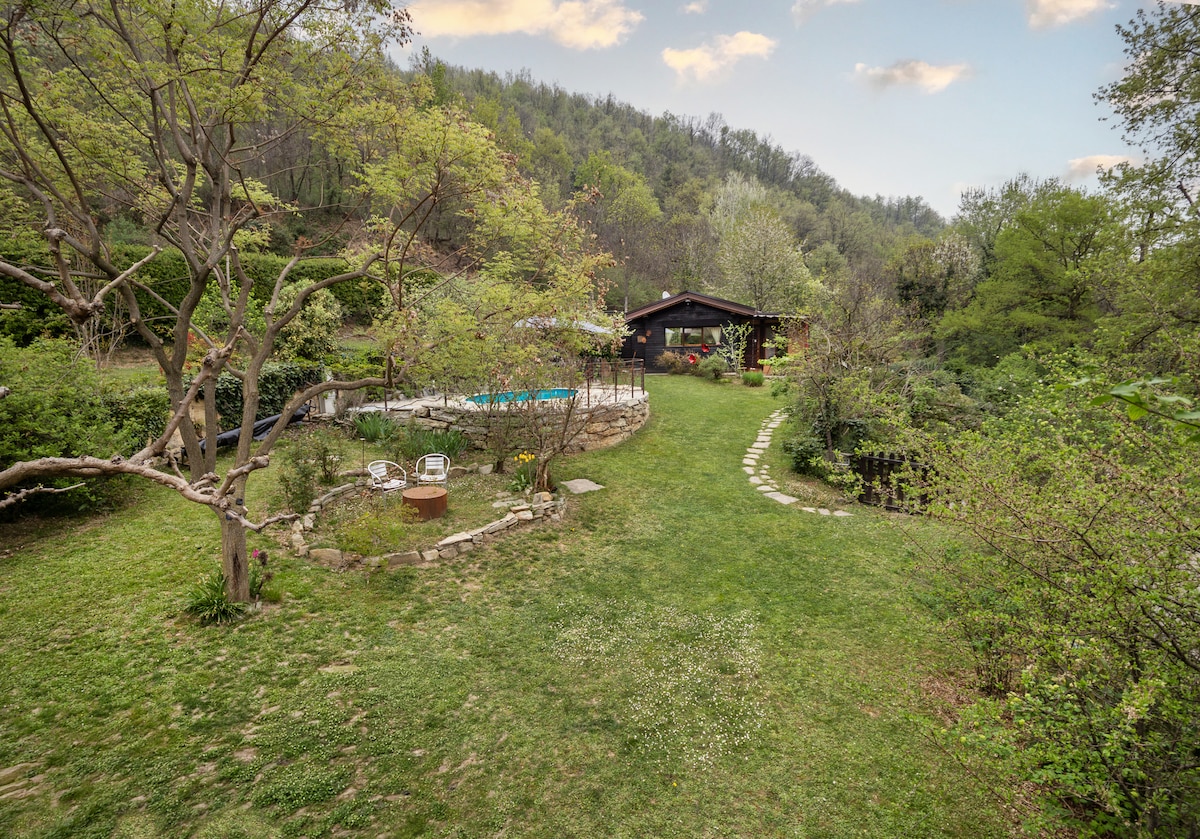 A peaceful luxury farm house in a very private location, for people looking for a cut-off with everyday life. The agricultural farmland is mostly made up of Olive trees arranged along terraces on hillside, Blueberries bushes and Plum trees. The property is located on a panoramic point with a 360* spectacular view on flat landscape, hills and The Alps. Surrounded by quiet forests and pathways to go for relaxing walks or hiking experience. A golf course is just a few minutes drive from here.