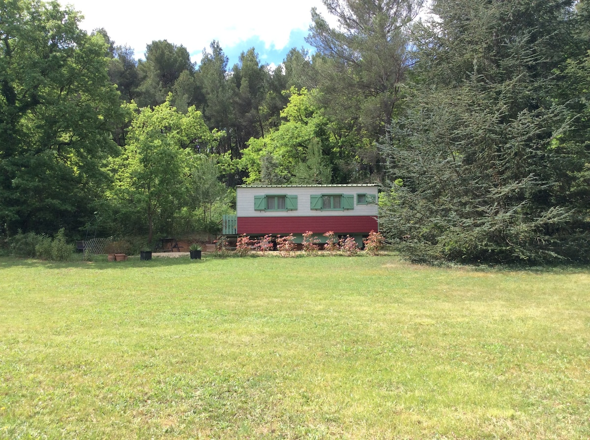 Roulotte nature avec piscine.