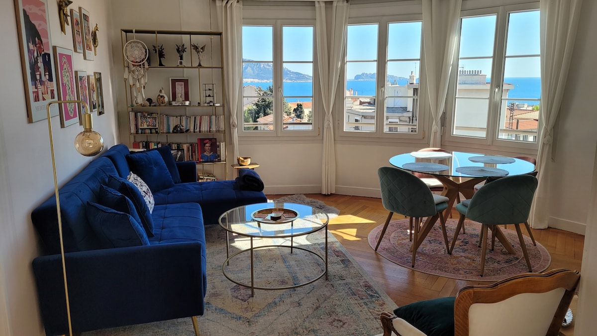 A bright apartment with panoramic sea-views from each room. You'll enjoy breathtaking sunsets from its large terrace, relax in the hamac and enjoy the view! Conveniently located in the heart of Endoume, one of Marseille's best neighborhood, you are only a 2 min walk away from the sea! A/C + fast and reliable wifi.