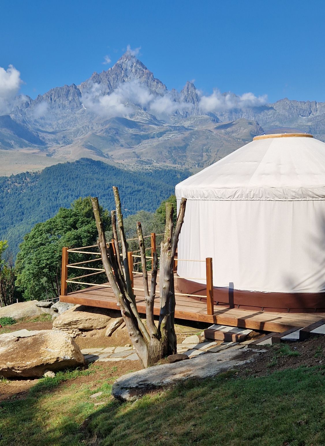 Questo spazio è così straordinario che non ti sarà facile dimenticarlo. Vivere un'esperienza unica di relax, in una iurta originale, con stufa interna per le giornate d'inverno, bagno interno. Vista mozzafiato sul Monviso e sui nostri Alpaca e le nostre Capre Cashmere che pascolano a pochi metri dalle yurte. La colazione te la portiamo in un grande cesto. Il tutto completato dalla tinozza finlandese riscaldata con stufa (a pagamento). Possibilità di mangiare nel nostro agriturismo di famiglia