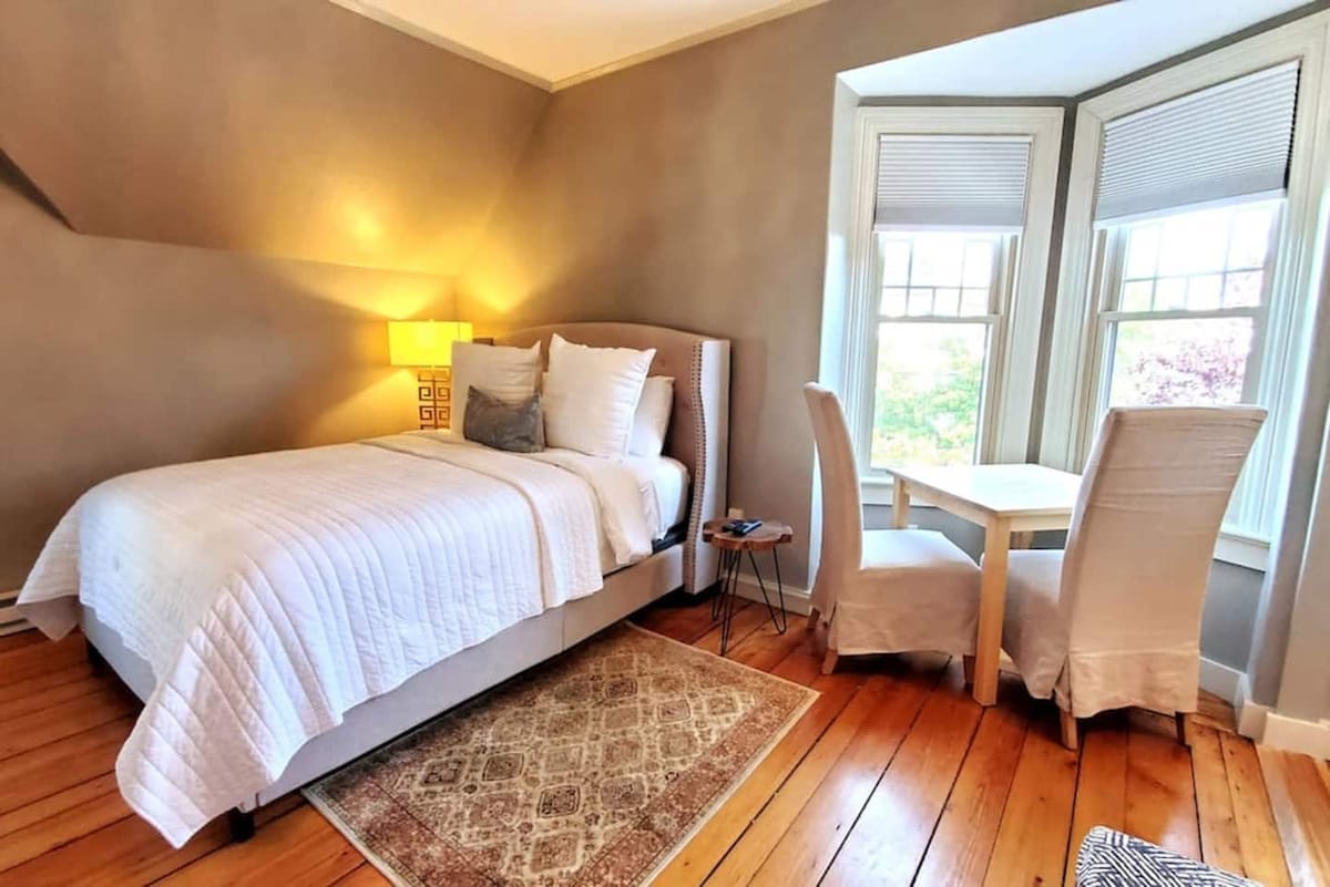 Sunny, inviting, 3rd floor walkup on East side of Providence. One block from Oak Bake Shop, Providence Bagel, Whole Foods; much more within one mile. Comfy queen bed + sofa bed, private bath, Apple TV. Great for long-term guests and weekend visitors. Backyard, grill, laundry available but shared with house. Potential basement storage for long-term stays. Ceilings are low in places, may not be comfortable for taller than 6'.