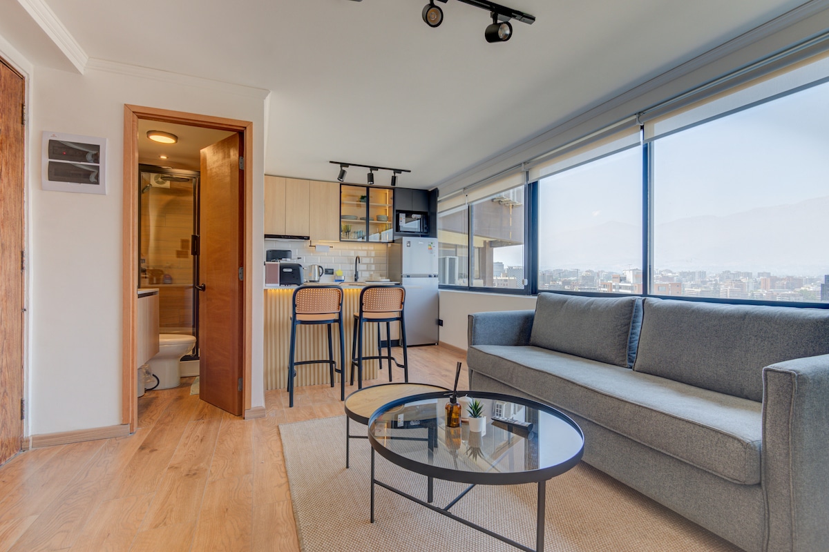 Ubicado en uno de los barrios más seguros de Santiago, este acogedor departamento de una habitación te ofrece una experiencia inolvidable durante tu estadía. Desde el balcón del departamento, podrás disfrutar de una hermosa vista a la ciudad, cordillera y al mall Costanera Center. A solo unos pasos, encontrarás una gran variedad de restaurantes, cafeterías, bares, tiendas y supermercados. Además, la excelente conectividad del barrio te permitirá desplazarte fácilmente por la ciudad.