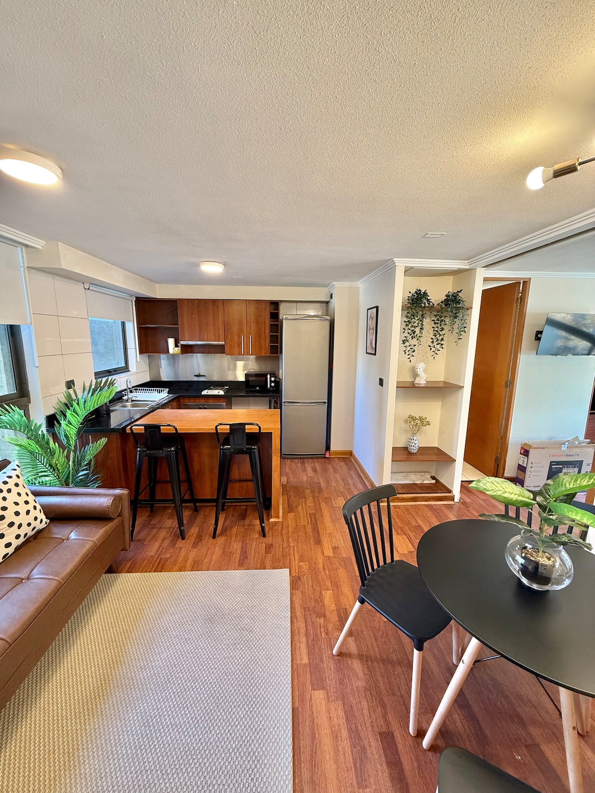 JC APART HOTEL Disfruta de una estadía cómoda en el corazón de Providencia. Moderno departamento de una habitación con cocina equipada y wifi gratuito. Incluye limpieza diaria acotada (sin lavado de platos). Estacionamiento disponible y mascotas bienvenidas con un pequeño fee. Ideal para parejas, familias o viajeros por trabajo que buscan confort y buena ubicación.