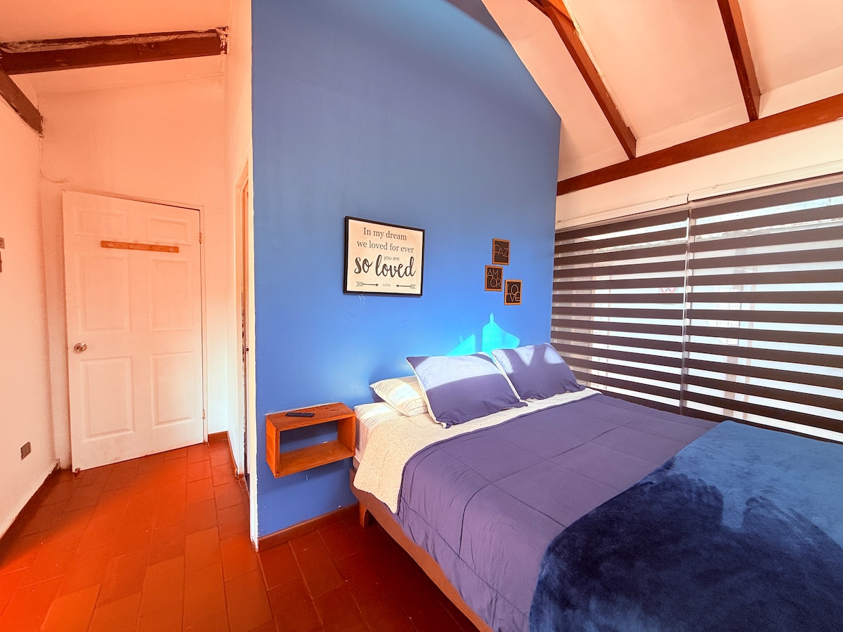 Cómoda habitación con cama matrimonial y baño privado. A tres cuadras del Metro Quinta Normal, a 7 minutos de la Plaza de Armas de Santiago, se encuentra esta casa de 1950, totalmente restaurada, cómoda y familiar. Desde donde se puede comenzar a recorrer el circuito cultural, patrimonial y gastronómico de los Barrios Brasil y Yungay. Además está ubicado a pasos de la Cafetería y panadería San Camilo, del Museo de La memoria y Los Derechos Humanos y de la Estación Central.