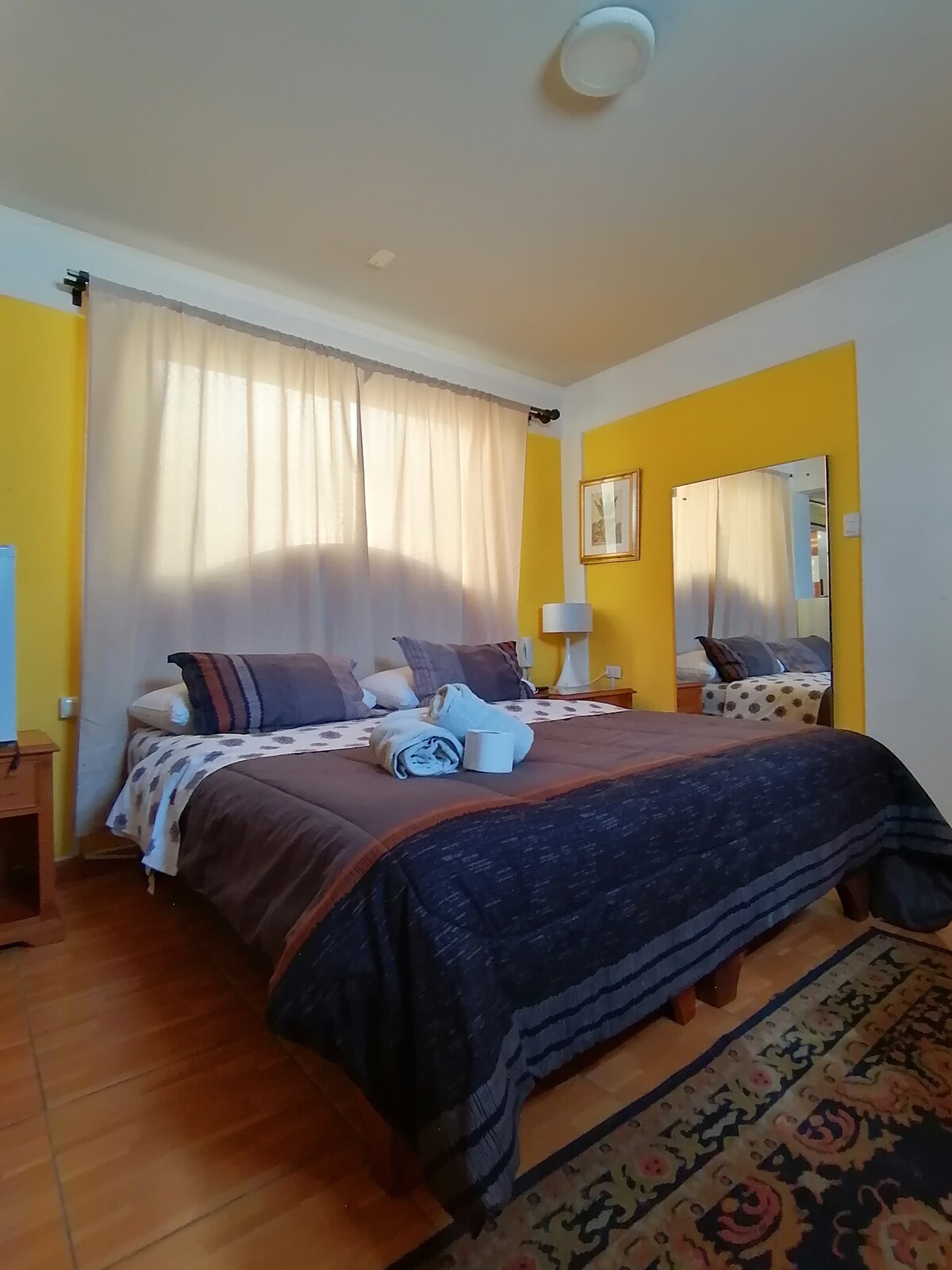 Habitación doble queen, con baño compartido H/M y 3 duchas. El hotel se encuentra a 600 metros de estación de metro Baquedano y Bellas Artes, desde donde se puede acceder a cualquier lugar de Santiago. Cercano a lugares turísticos como cerro San Cristobal, Casa Pablo Neruda, teatros, zona bohemia (Barrio Bellavista). El acceso al hotel y seguridad es controlado por camaras de forma remota. Contará con llaves para ingresar en cualquier momento al hotel por lo que no estará restringido el horario.