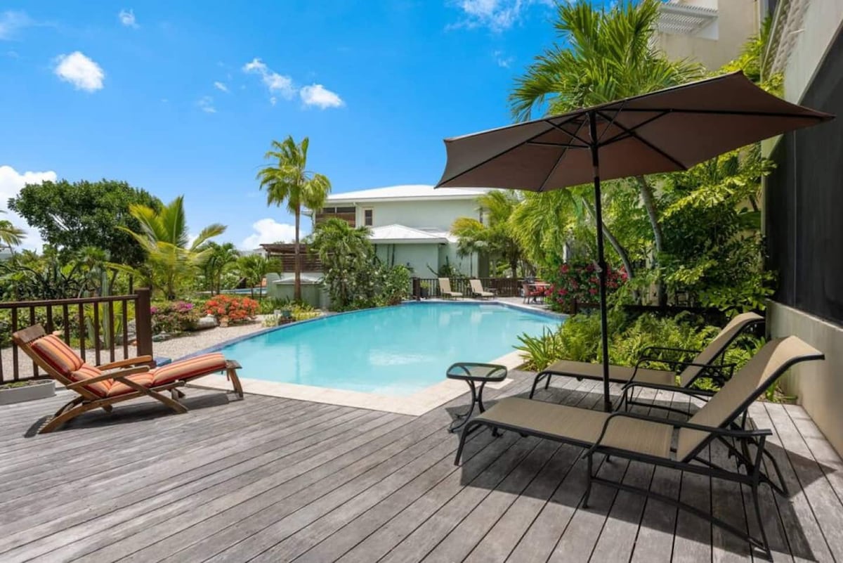 Discover your private oasis in our delightful 1-bedroom villa nestled amidst lush greenery. This is a very safe and high end residential neighborhood with patrol cars nearby. Conveniently located just a short stroll away from Long Bay beach, where breathtaking sunrises and unforgettable beach memories await. Our welcome packet is available after booking. It's great for first time visitors to the island! Need more room? Adjacent villas are available to accommodate your larger groups as well.
