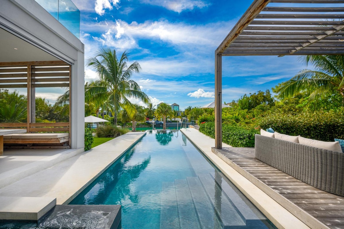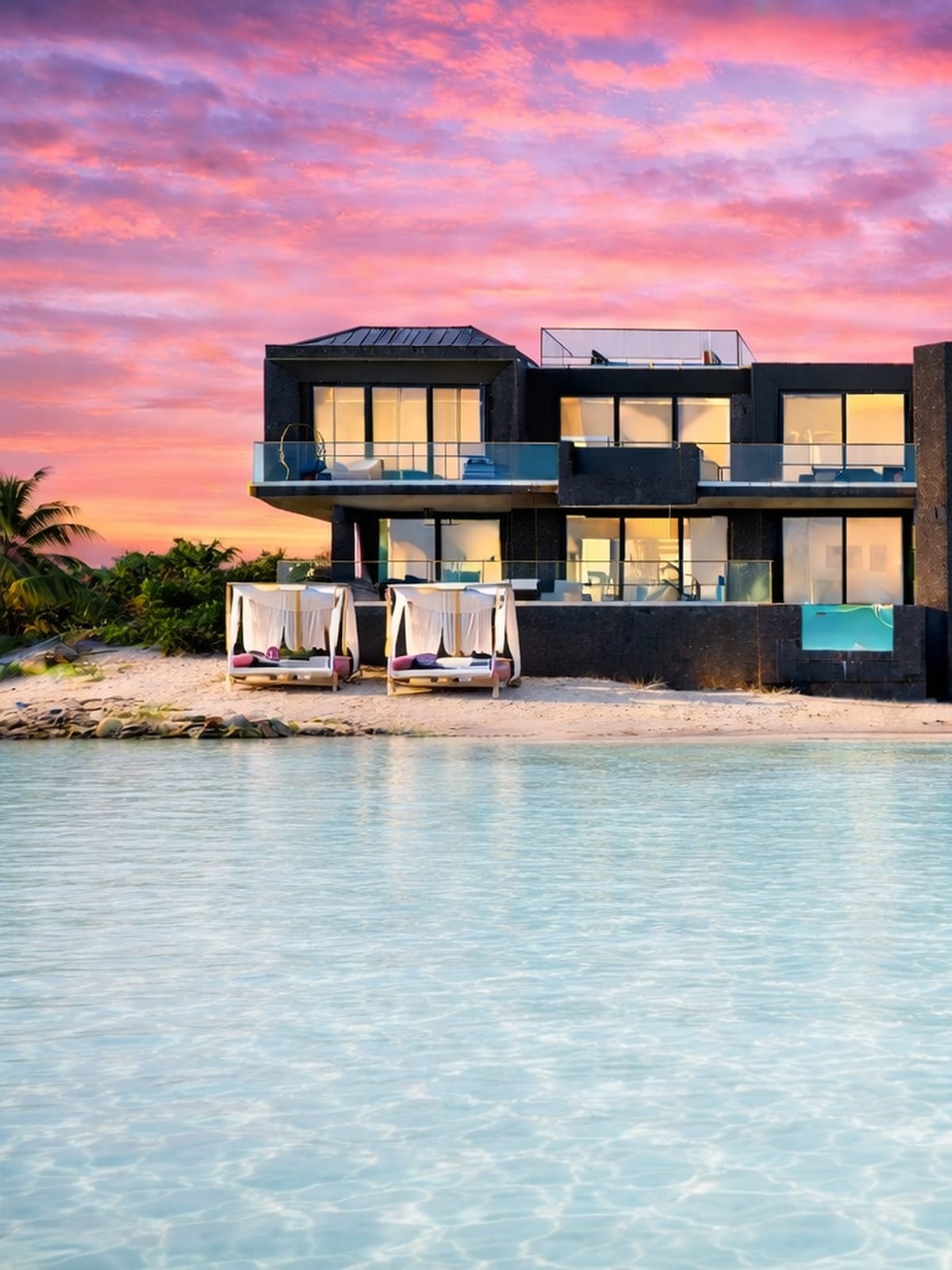🌴 Beachfront Luxury in Turks & Caicos 🌴 Where modern architecture meets barefoot paradise. This brand-new villa defines elegance with two see-through glass pools. Step from your backyard onto the powder-soft beach, multiple balconies and a rooftop with 360° turquoise views. Inside, enjoy 4 ocean-view bedrooms with private ensuite, a chef’s kitchen. Featuring a private gym, lush tropical gardens, and a multi-game pool/ping-pong table. . Sleeps 10 in pure island luxury. 200m to Sapodilla ⛱️