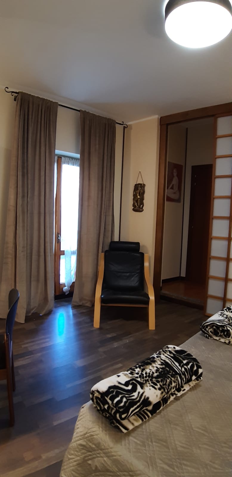 Bilocale di prestigio di 80 mq.molto luminoso, completo di zona giorno con divano letto matrimoniale e zona notte con letto matrimoniale,angolo cottura attrezzato, TV a muro, zona pranzo e zona conversazione, cabina armadio con grande terrazza arredata vista parco e bosco, bagno completo di ogni confort con ampia doccia. Verrà chiesto un deposito cauzionale di € 200 in contanti al check-in che verrà restituito al check-out dopo il controllo degli ambienti.