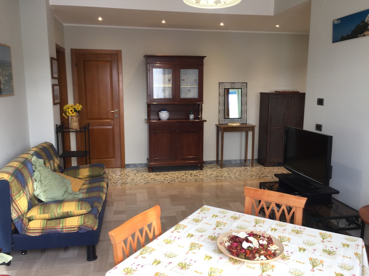 Mini Appartamento bilocale (3 posti letto) a poco più di 1 minuto a piedi dalla Spiaggia. L'appartamento ristrutturato recentemente, è al 4° piano con ascensore. Composto da camera matrimoniale, soggiorno abitabile con divano letto, angolo cottura, bagno con box doccia. Due balconi con vista mare. Panorama a 360 gradi su Baia del Conero, Porto Recanati, Loreto, Appennini. Aria condizionata, tv lcd, cassetta di sicurezza, portone blindato, lavatrice, posto auto riservato coperto gratuito, Wi-fi.