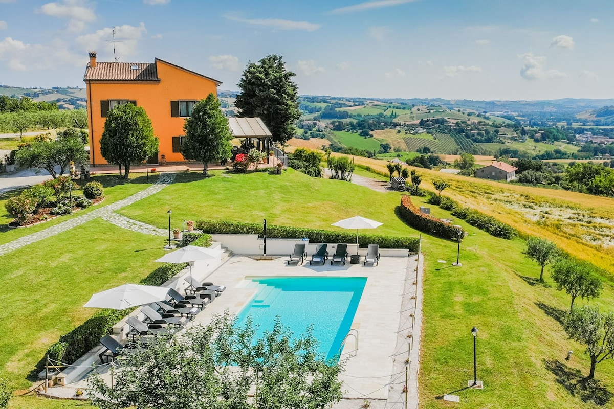Leondina Country House with pool and panoramic view in Corinaldo, a heaven of peace in the Marche countryside
