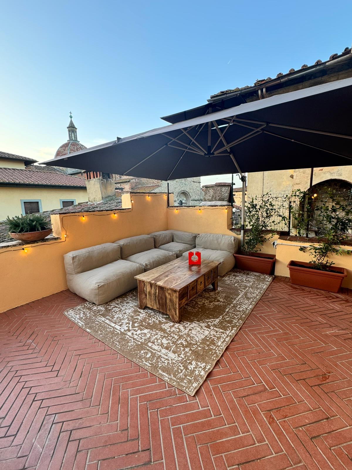 CIN: IT051002C2RI7OBEQC. Completely renovated apartment on 1st floor with large equipped terrace (umbrella and sofa) in the center of Arezzo. Consists of 2 air-conditioned double bedrooms, kitchen-living room with sofa bed (120cm wide, only on request), private bathroom with shower. Free Wi-Fi. 5minutes walking from train station and close to many parkings: Cadorna, Baldaccio, Central parking.