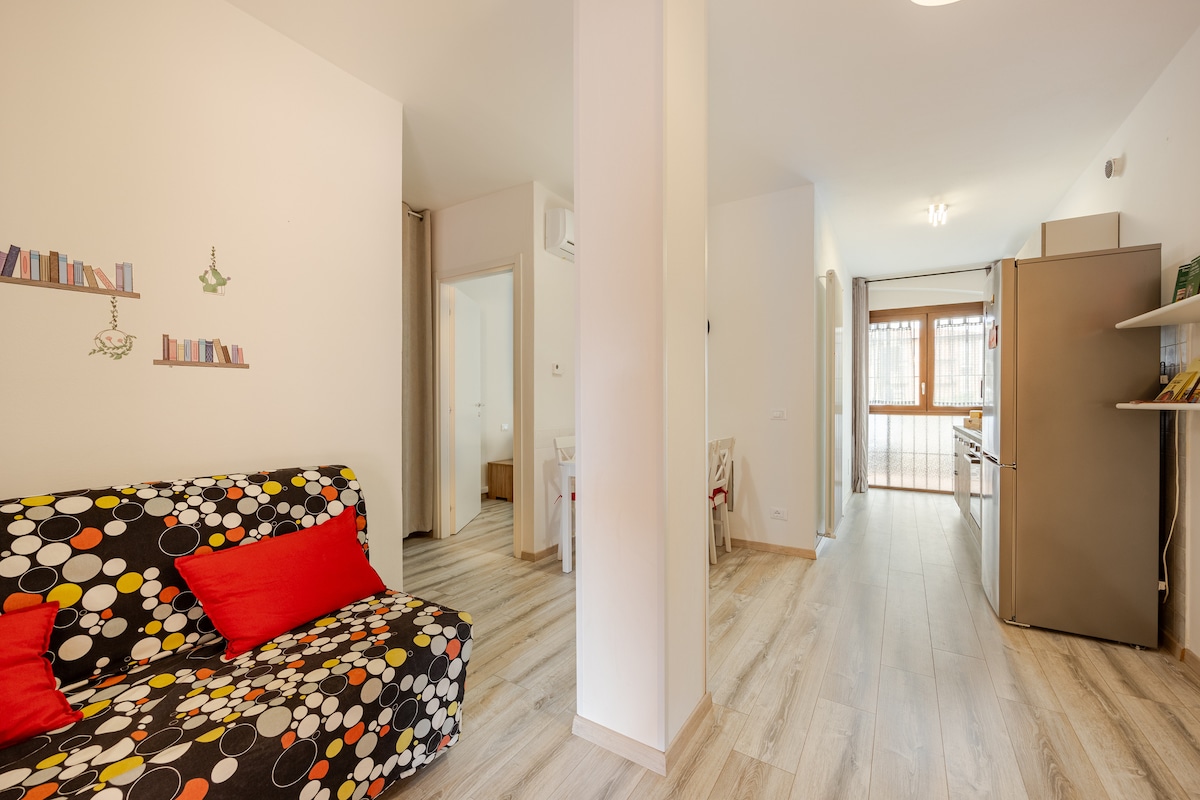 Bilocale nel borgo, il centro storico di Pontassieve, al 2° piano di un piccolo condominio senza ascensore, a 10 minuti a piedi dalla stazione ferroviaria e bus con frequenti spostamenti per Firenze (23 minuti), Mugello, Consuma, Vallombrosa e il lussuoso Outlet The Mall. Composto da 1 camera con letto singolo reclinabile, tv, ampio armadio e 2 finestre con vista sul fiume e sul ponte Mediceo, 1 cucina-soggiorno con google cast tv, divano trasformabile in letto singolo e 1 bagno con doccia.