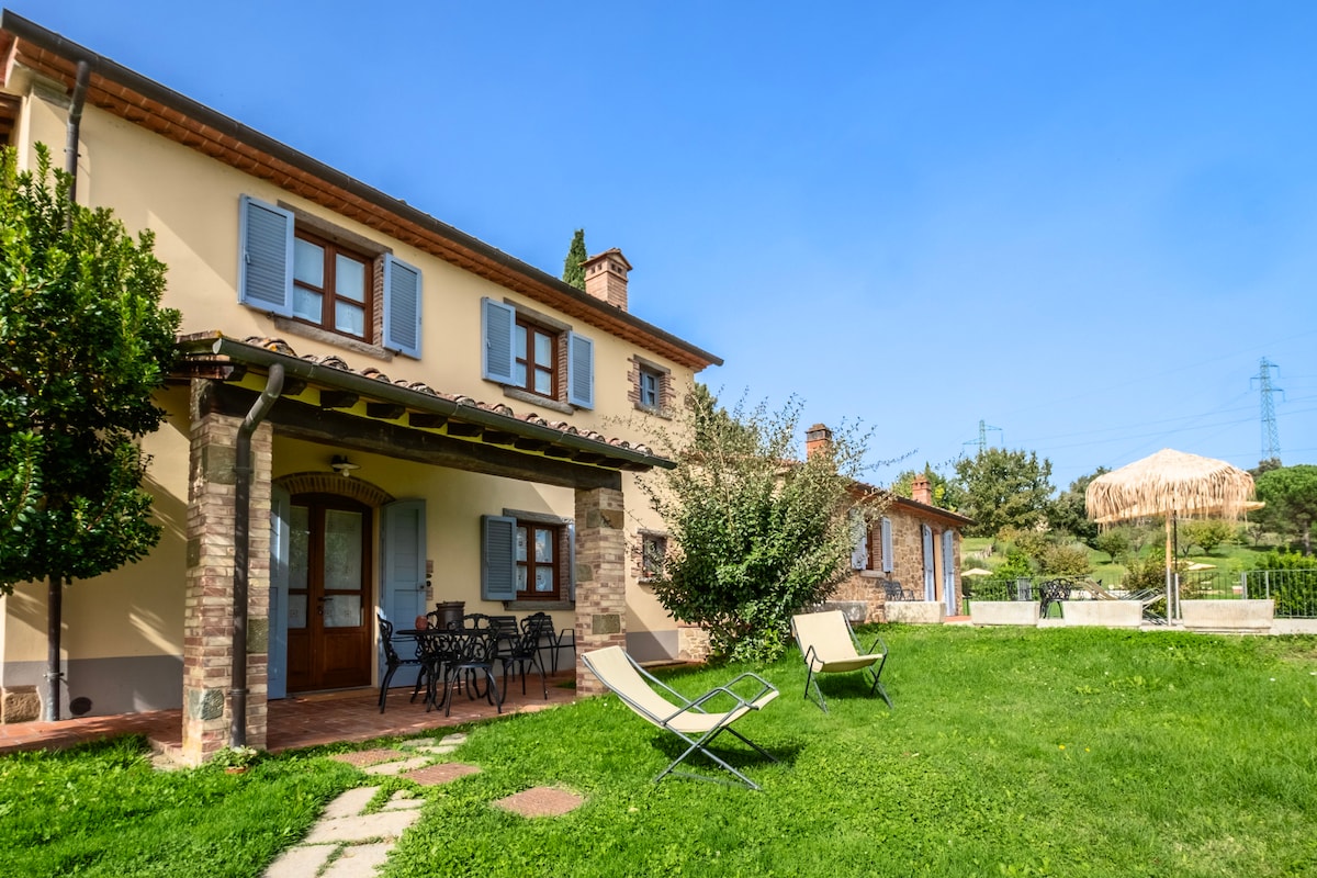 In the heart of Tuscany between Arezzo, Florence and Siena but far away from the bustle of the cities, you will find a pristine landscape where to enjoy nature and relaxing, amazing views and much more for a perfect getaway with your friends or family. A villa of 190 mq with 600 mq garden,where you can enjoy lunch outdoors, have fun making pizza and baking it in the wood- oven, or savour a wonderful barbeque. A comfortable Villa for guests who love being together.