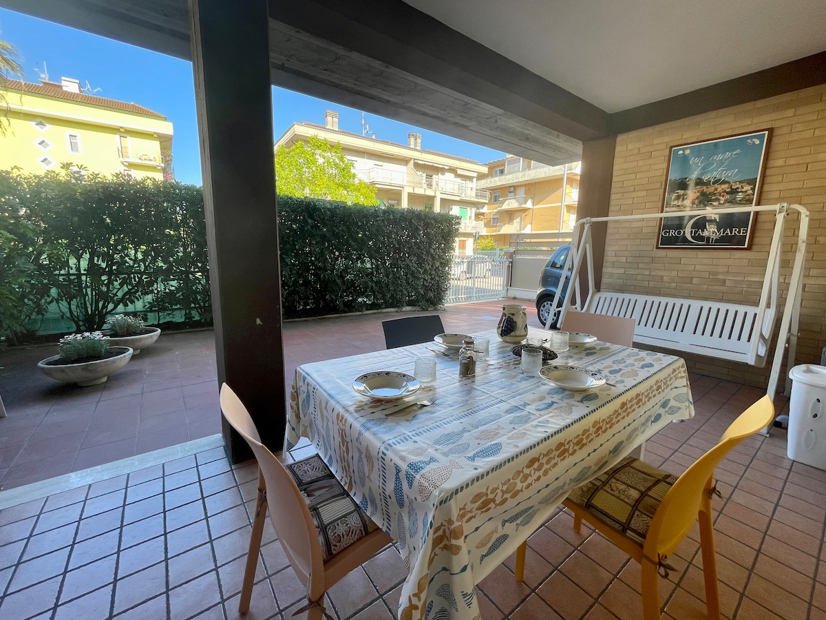 Appartamento arredato per vacanze al mare, con 4 posti letto, 70 metri quadrati, situato al terzo piano (mansardato) , dotato di ascensore e impianto di condizionamento (caldo/freddo); dista 200 metri dal mare 5' e 10’ dal centro, a piedi. Si affitta per soggiorni minimi da 6 pernotti fino a 29 pernotti. Composto da cucina, camera matrimoniale, camera con due letti, bagno con doccia; le due camere sono servite da un balcone che volge a mezzogiorno.