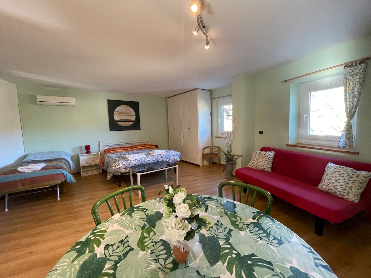La Dépandance offre un ampio open-space con vetrata panoramica, letto matrimoniale, una piccola cucina dotata di piano a induzione, frigorifero e microonde. Bagno privato con doccia. All’esterno ampio terrazzo dove rilassarsi e far colazione in serenità, giardino in comune interamente recintato e barbecue. Parcheggio gratuito dentro al cortile. Possibilità di Colazione a 10€/persona. L’accesso alla casa ha una strada sterrata di circa 30 metri facilmente percorribile