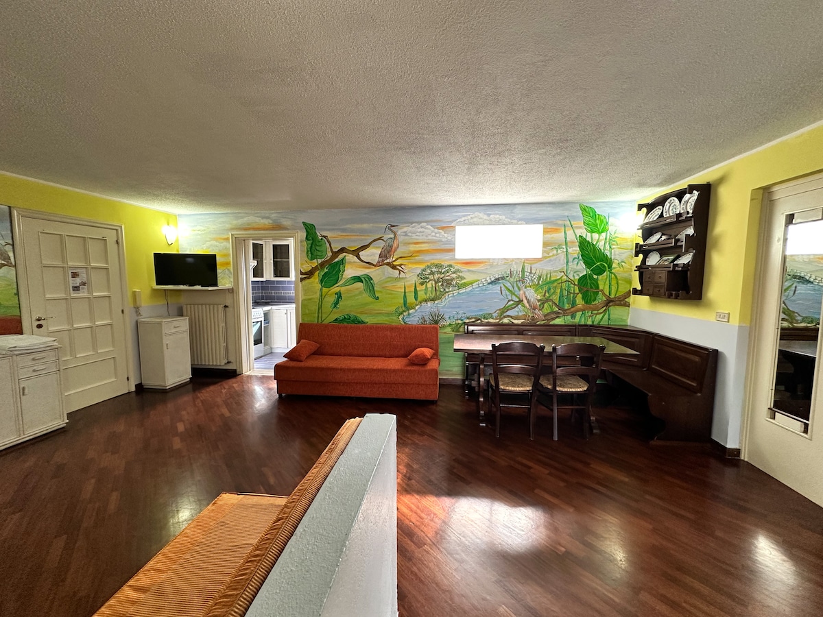 Appartamento/taverna, comoda e spaziosa: cucina, bagno, camino, giardino, Ingresso indipendente. disponibile per singole prenotazioni, accoglienza max 4 persone. Include 1 letto matrimoniale e 1 divano letto ideale per una coppia con figli; dotato inoltre di camino, TV, zona pranzo interna ed esterna, posto auto gratuito protetto da sistema di video sorveglianza **SAUNA*** come extra Il costo di eventuali danni sono a carico dell'ospite.
