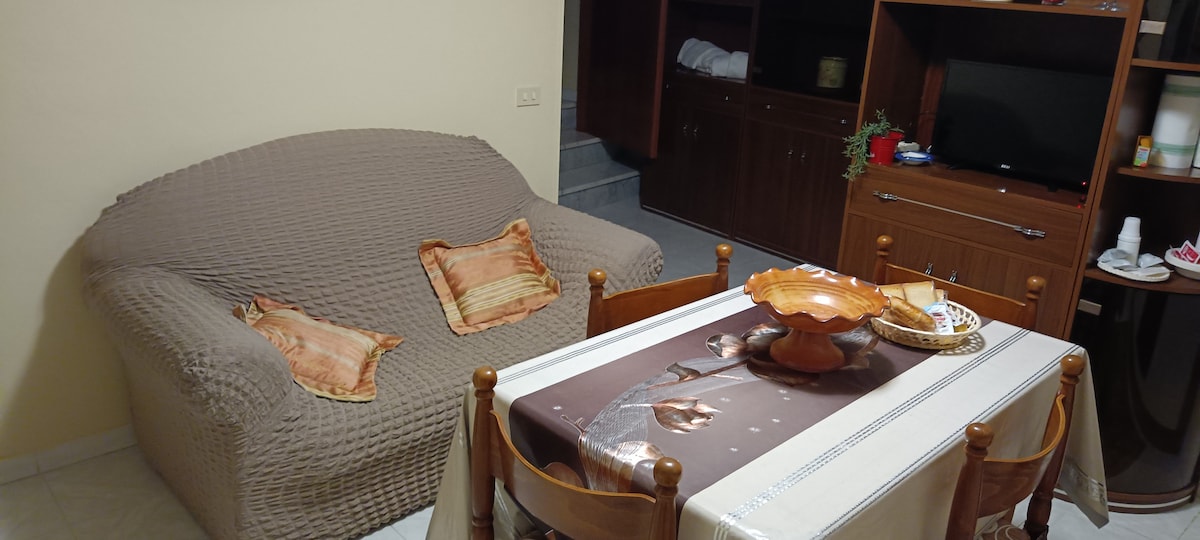 Appartamento/taverna, comoda e spaziosa: cucina, bagno, camino, giardino, Ingresso indipendente. disponibile per singole prenotazioni, accoglienza max 4 persone. Include 1 letto matrimoniale e 1 divano letto ideale per una coppia con figli; dotato inoltre di camino, TV, zona pranzo interna ed esterna, posto auto gratuito protetto da sistema di video sorveglianza **SAUNA*** come extra Il costo di eventuali danni sono a carico dell'ospite.
