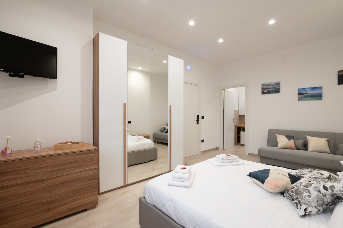 Nestled in a bustling neighborhood just steps away from the seafront and beaches, our cozy accommodation provides top-notch comfort with climate control, a plush king-size bed, a fully-equipped kitchen, and a premium roomy bathroom. For your entertainment, kick back with a 42-inch Smart TV featuring Netflix and other streaming options, all supported by blazing-fast 75 Mbps Internet. With free parking and your own private balcony, our place is the go-to choice for a truly relaxing stay in Trani.