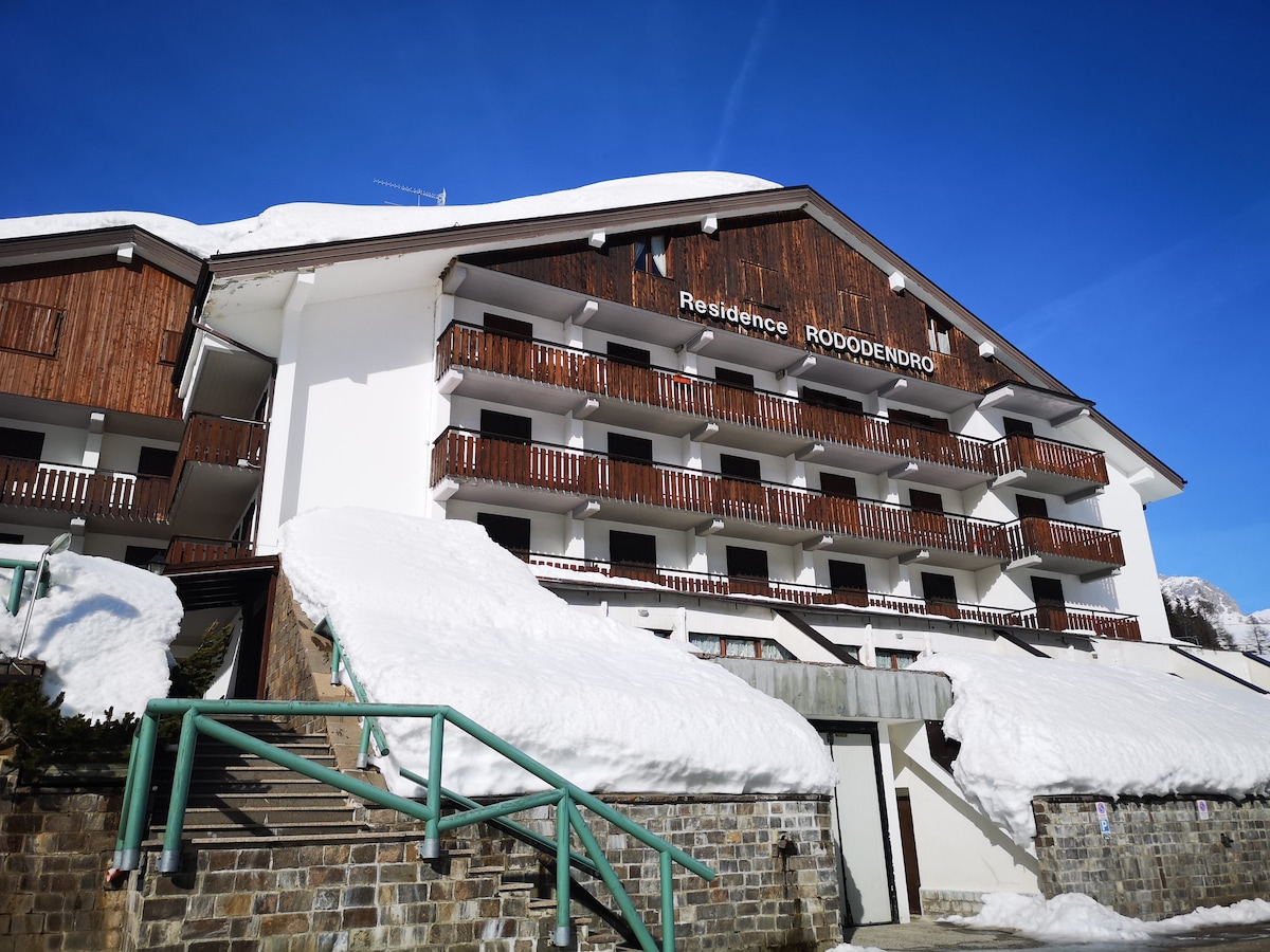 Appartamento situato nel Residence Rododendro, località Passo San Pellegrino, in comune di Moena (Tn), passo che collega Falcade (Bl) a Moena. E' a 1.918m sul livello del mare, in un sito dall'ottimo innevamento, con gli impianti di sci da discesa a 150 metri di distanza e raggiungibili a piedi, e la pista da sci da fondo appena attraversata la strada. Ottimo punto di partenza per splendide escursioni. E' spesso utilizzato anche dalla mia famiglia e quindi ci teniamo che sia accogliente.
