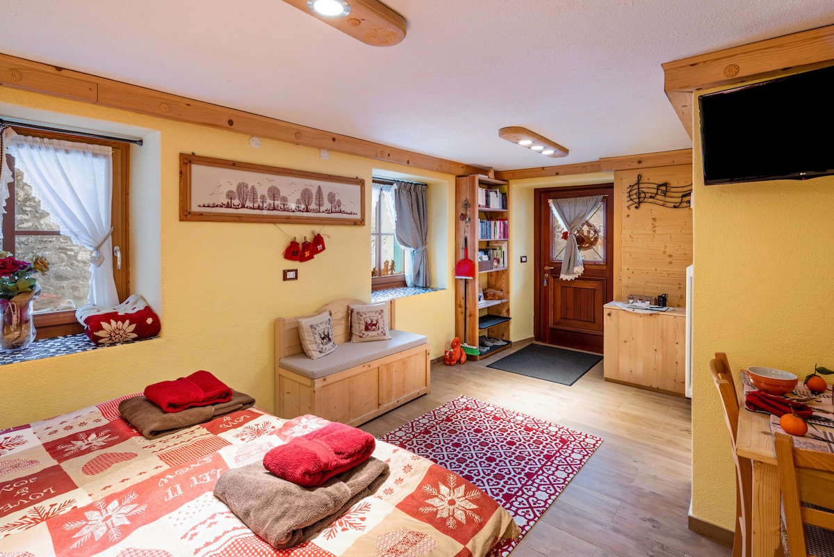 The Nene Lalla Room in Pieve di Cadore is the perfect spot for a relaxing holiday with your loved ones. The 14 m² accommodation features a bedroom with a double bed and a single bed, a private ensuite bathroom, and sleeps up to 3 guests. Additional amenities include high-speed Wi-Fi and a cot available on request. The property does not have air conditioning or a kitchen.