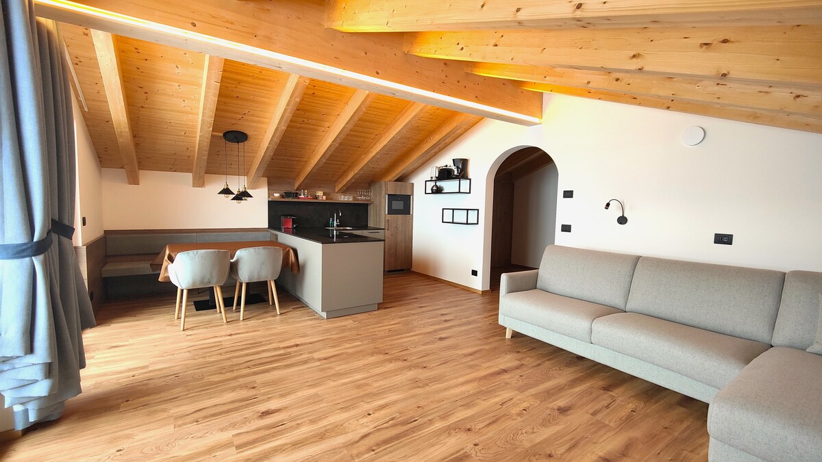 Appartamento Thule is a welcoming and bright space nestled in the Dolomites, a UNESCO World Heritage Site. Relax by immersing yourself in nature. A breathtaking view will accompany your stay and your awakenings. Get cozy. The warmth of wood will comfort your evenings on the sofa with movies and TV shows from Netflix and Prime Video (included). Let the fresh and clean air regenerate you. The surrounding area is also full of activities to explore and sports to practice, in summer as in winter.