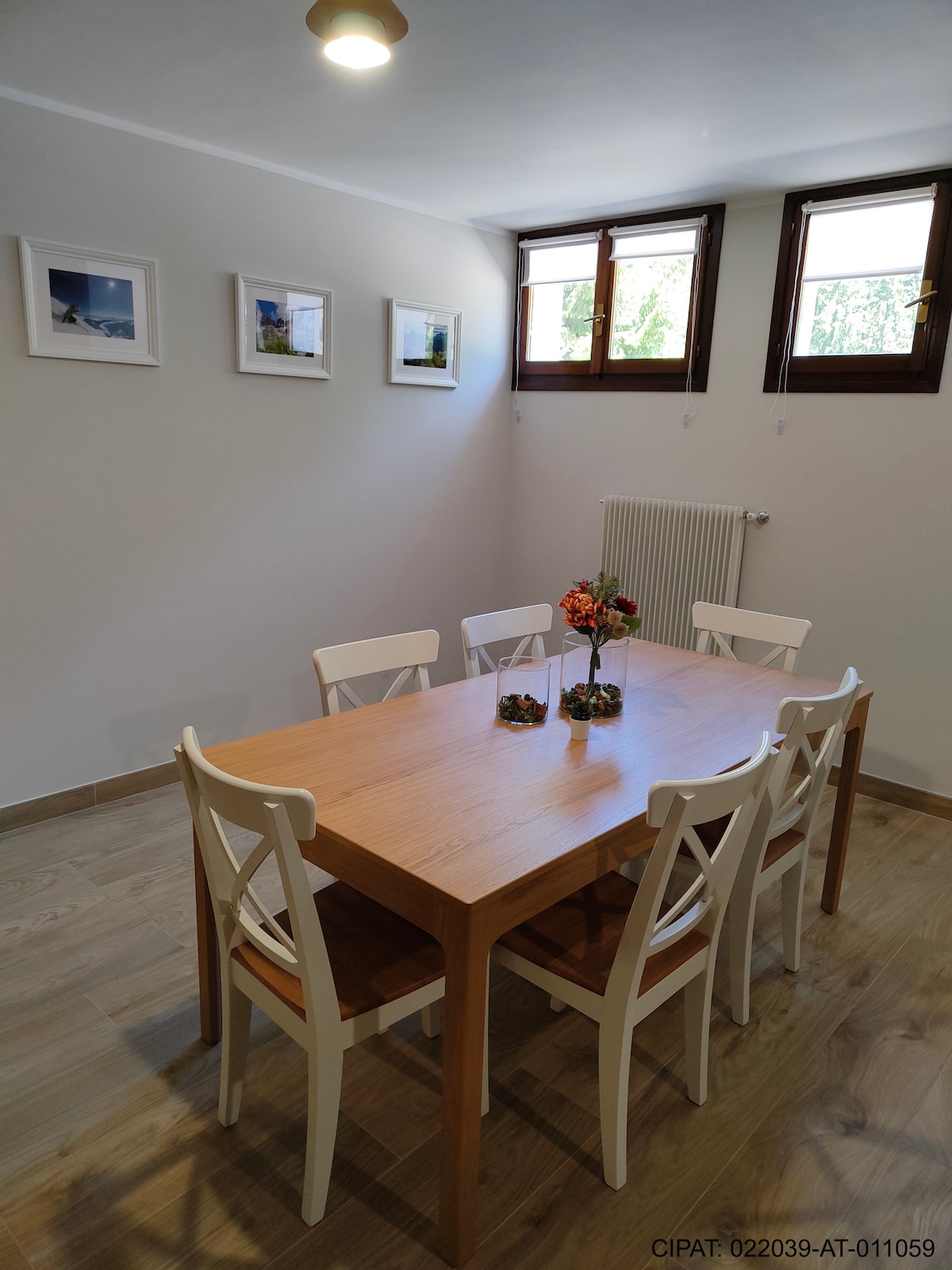 Apartment located in the characteristic hamlet of San Cipriano, in front of one of the oldest churches in the Agordino dating back to the 12th century. Enviable position to reach tourist destinations such as Falcade, Alleghe, Arabba both by car and comfortably using public transport (the stop is a few steps from the apartment). Agordo, just two kilometers away, offers all essential services (supermarkets, shops, bars, restaurants, newsagents, self-service laundry, hospital, etc.)