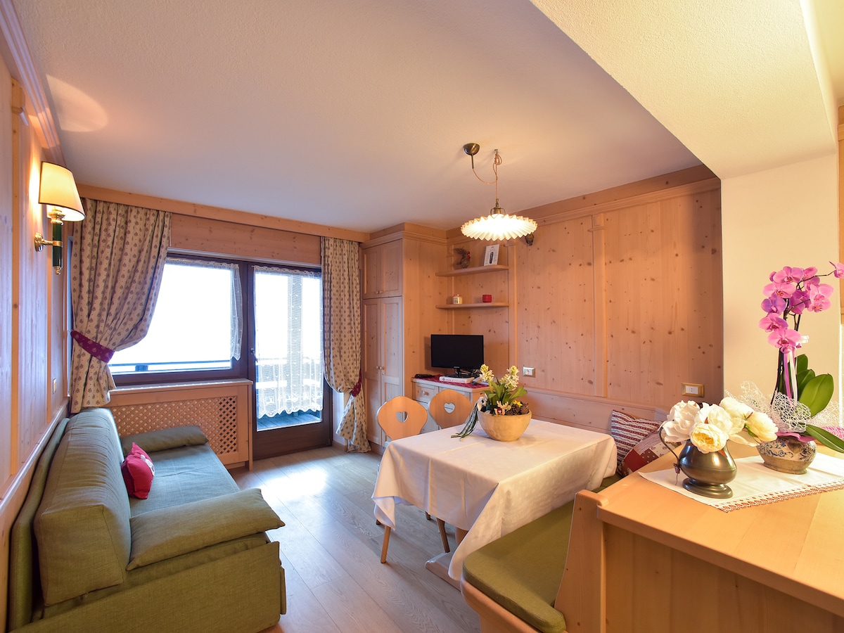 Rilassati in questo spazio tranquillo in posizione centrale. Affitto appartamento per 2 persone dal 15 dicembre al 07 gennaio per 2 o piu giorni. Servizi inclusi nel prezzo: pulizie giornaliere, navetta da e per gli impianti (Gran Risa o Gardenaccia), piscina, sauna, biancheria da cucina/bagno/letto. posto auto assegnato esterno, ski-room