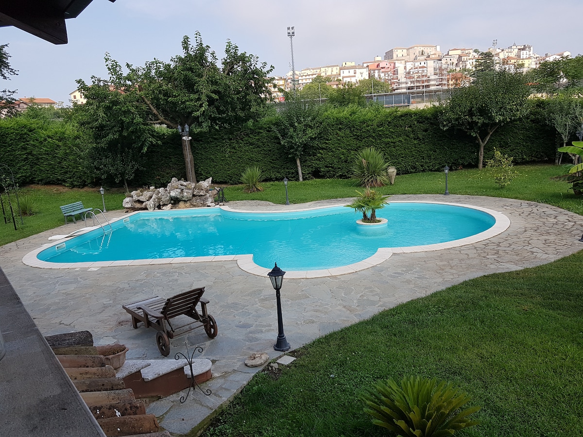 families,couples,groups, and retirees. A peaceful haven surrounded by nature, where the greenery dominates and relaxes the view. The villa is located in the beautiful Sannio countryside; it is a semi-detached property with its own entrance. 7 minutes from the center of Benevento and 5 minutes from the Buonvento shopping center. With easy access to Naples, Caserta, and the entire Campania region, it's a perfect base for exploring the beauty of Sannio. A perfect retreat offering absolute privacy.