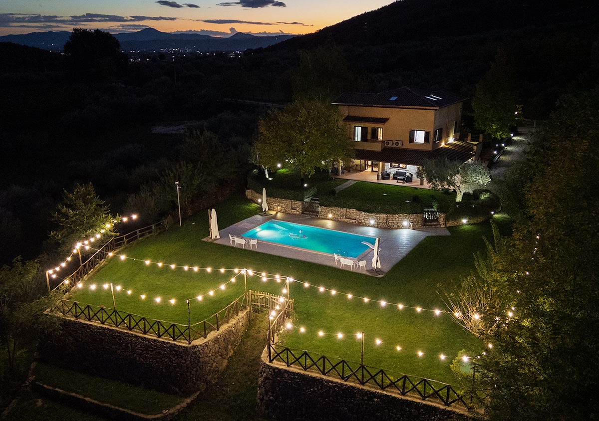 Villa Santoro Paradiso Verde is een exclusief verblijf in de Caiatinese heuvels, op 4 km van Caiazzo, met panoramisch uitzicht over de Telesina-vallei en de Matese- en Taburno-bergen. De villa biedt een panoramisch zwembad, ruime buitenruimtes, solarium en barbecuezone. Ideaal voor vakanties met familie of vrienden, grote groepen, privé-evenementen en bedrijfsmatige teambuilding. Exclusief gebruik, volledige privacy en rust, 15 km van de Reggia van Caserta en 50 km van Napels.