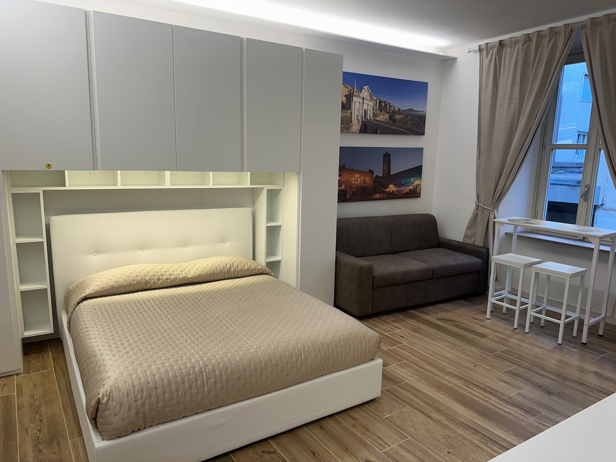 Newly renovated, classic but modern studio apartment in the heart of old town Bergamo. Furnished and decorated in detail, it has a double bed and a double sofa beds, kitchen and living area, a private bathroom with a wide shower. Amazing view of the surrounding roofs and hills. All modern comforts, AIR CONDITIONING, wi-fi, Netflix, washing machine, coffee machine, elevator... CHECK-IN after 9.00pm available on request.
