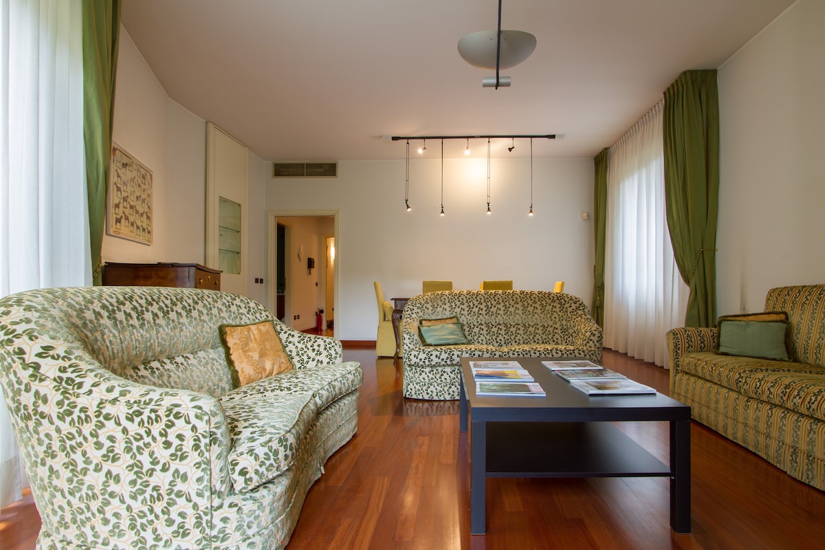 Appartamento di lusso al piano 9 di un elegante condominio, con terrazza affacciata sul parco e splendida vista. Gestito da Super-Hosts di grande esperienza, che vi accoglieranno di persona. Servizio gratuito di navetta aeroportuale. Garage gratuito se arrivate in auto. Dotato di ogni confort: Aria condizionata in Camera e Living, 2 Smart TV 55", Playstation, Scacchi, Carte da gioco, Wi-Fi gratuita super veloce, Lavatrice e Lavastoviglie con detergenti, Cucina attrezzata, Macchina Caffè Lavazza.