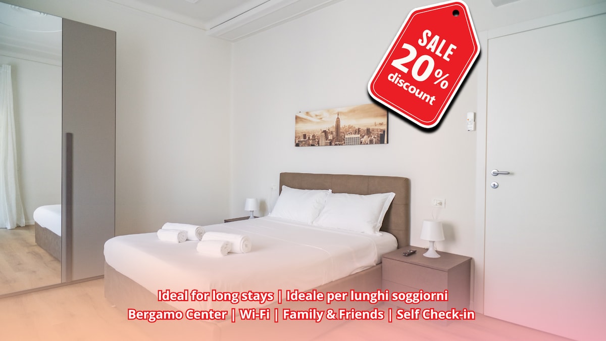 Appartamento di oltre 200 metri quadrati disposto su due piani in centro a Bergamo. Posizione perfetta ai piedi di Città Alta e vicinissima al centro di città bassa. Spazioso e ottimo per grandi famiglie, dotato di aria condizionata, ampi terrazzi con vista su Città Alta. È disponibile un letto per neonati pratico e funzionale. WiFi alta velocità gratuito. Organizzo anche transfer privato (a pagamento) con Aeroporto Bergamo BGY, in alternativa fermata autobus per Aeroporto a 5 min a piedi