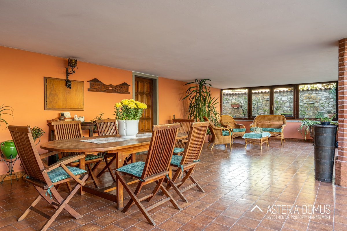 Elegante e lussuoso appartamento in casa storica ai piedi delle antiche mura di Bergamo; 100 metri dalla funicolare - 10 minuti a piedi da città alta. Ampio e luminoso con dettagli di pregio e finiture moderne, arredato con mobili di design, di antiquariato e modernariato. L'ingresso indipendente dà accesso ad un ampio patio ad uso esclusivo degli ospiti attrezzato con un salotto esterno rallegrato da piante e fiori, ideale per rilassarsi all'aria aperta. Perfetto per famiglie e gruppi di amici