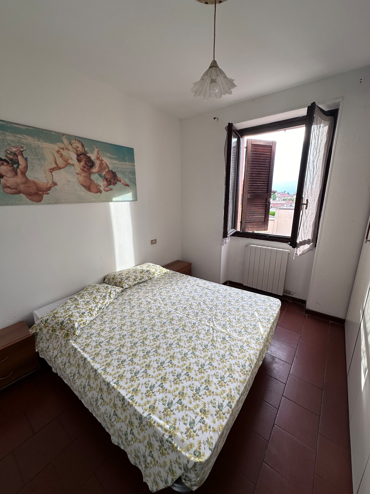 Bright attic 6th floor, (lift to 5th floor). Two bedrooms, walk-in wardrobe, living room with kitchenette and study area, bathroom with shower, washing machine. 2 small terraces with views over Città Alta and the roofs of lower Bergamo. Quiet but very central, a stone's throw from the clubs and shopping. Romantic and familiar ambience. Close to the Court, also excellent for business trips.