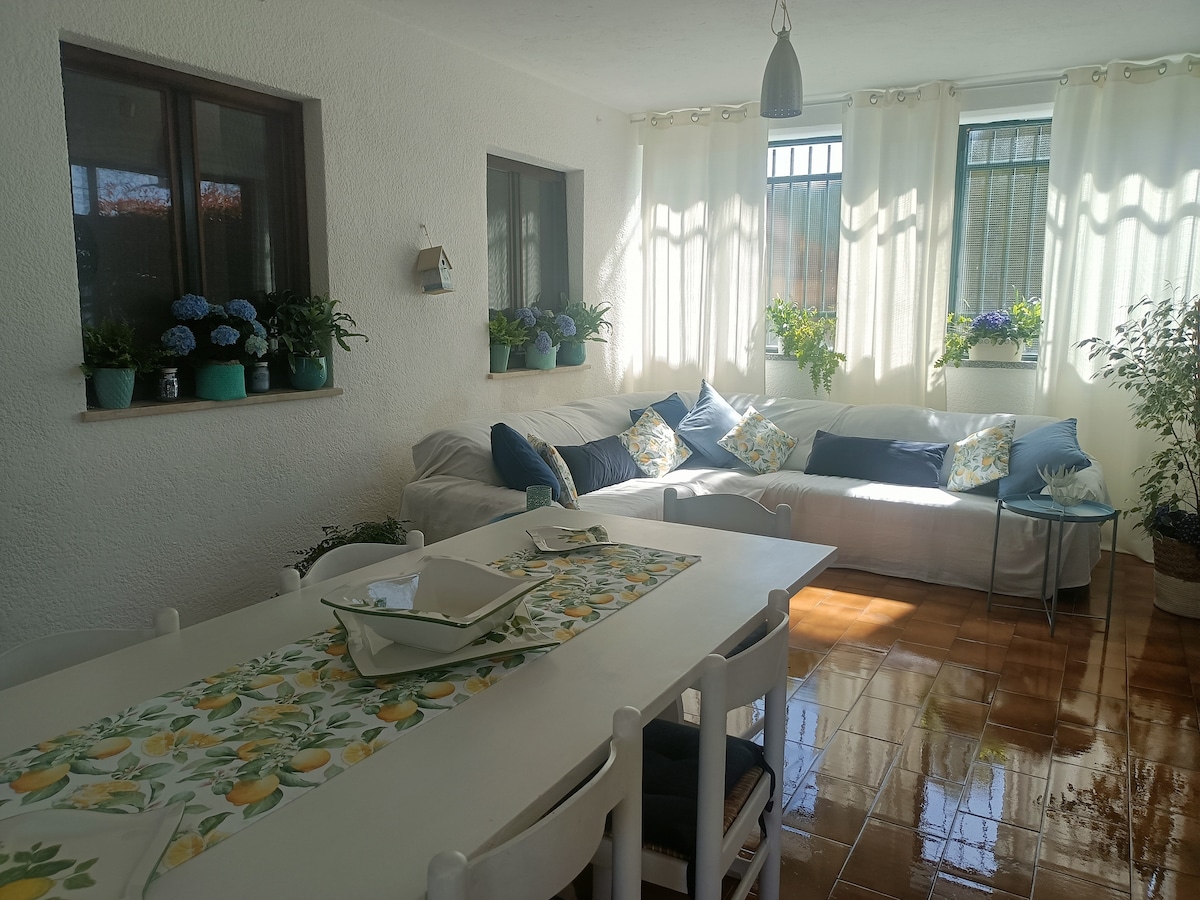 Appartamento piano terra di 100 mq più a disposizione grandissima veranda coperta in villetta molto gradevole. Accesso indipendente e privacy garantita, wifi, camino a legna e parcheggio gratuito. Allestimento completamente nuovo. Ampia cucina su salone living, sala caminetto, bagno di servizio, camera da letto matrimoniale con bagno in camera, seconda camera con letto una piazza e mezza, 2 letti singoli e su richiesta lettino per bimbi fino a 2 anni. Bellissima veranda esterna coperta.