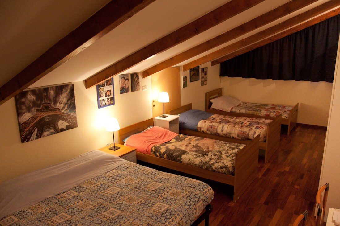 La stanza, a circa 2 ore da Milano e Torino,ampia e luminosa, può ospitare cinque persone e non è condivisa con altri. Si trova all'interno di un'abitazione privata, il bagno è a disposizione esclusivamente degli ospiti e dispone di tutti i comfort. L'abitazione si trova a 3 minuti d'auto dal centro. È possibile l'utilizzo della cucina sita in tavernetta. Comodo parcheggio.