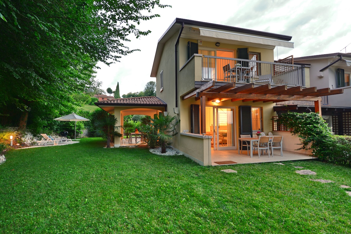 This magic and beautifully curated home offers peace, privacy, and stunning views of Lake Garda, vineyards, and green meadows. Two floors with 2 double bedrooms, a sofa bed, and a wall-mounted fold-down bed. 2 bathrooms (1 with shower), spacious garden, 3 terraces, BBQ, sun loungers, and shared quiet pool. Fully equipped kitchen, very clean, and carefully maintained in every detail. No parties allowed. The terrace has wind screens, making it comfortable even when it’s windy or a bit cool!