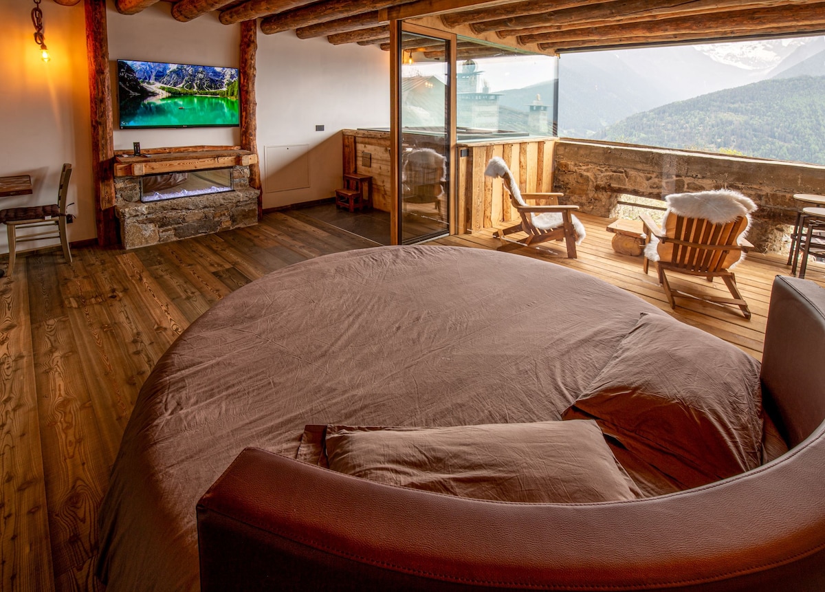 Loft esclusivo con angolo cottura e spa privata composta da sauna, doccia emozionale con nebulizzazione, effetto pioggia e lama d'acqua. Mini piscina con vista mozzafiato sulle montagne innevate e solarium (patio) - IT017198B4VQ7PJDM3 NOVITA' 2026 - FOOD DELIVERY! Grazie ad una nuova collaborazione è possibile usufruire del servizio di consegna di pranzo e cena (primi piatti, secondi, pizze, vini, ecc...) direttamente allo chalet!