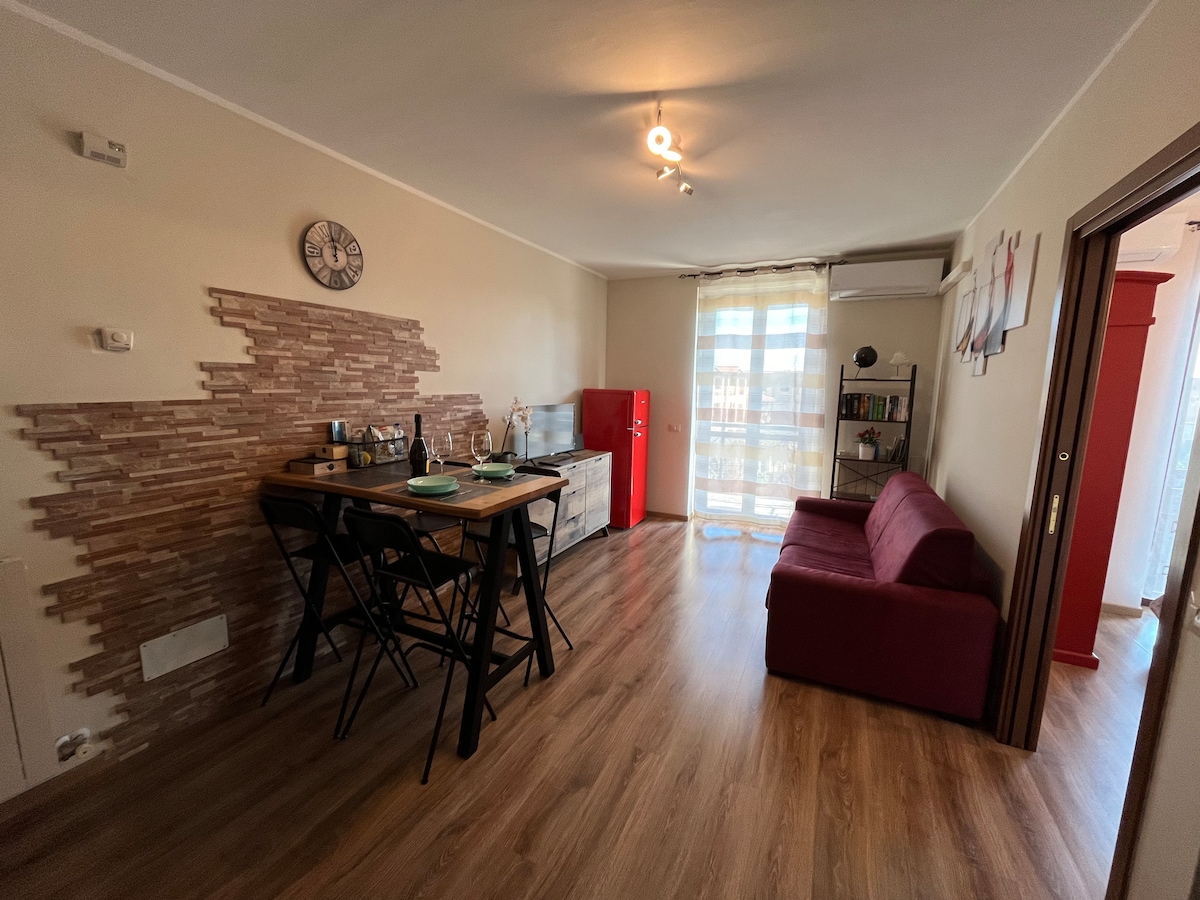 Appartamento di nuova ristrutturazione completamente attrezzato, con balconi e dotato di aria condizionata, zona giorno, angolo cottura, camera da letto separata, divano letto, WiFi gratuito e TV a schermo piatto. la struttura dispone di bagno privato con doccia, set di cortesia e asciugacapelli. Sono fornite biancheria letto e bagno. Situato in posizione comoda a tutti i principali servizi: negozi, panificio, farmacia, bar, pizzerie, ristoranti e gelaterie. Garage gratuito