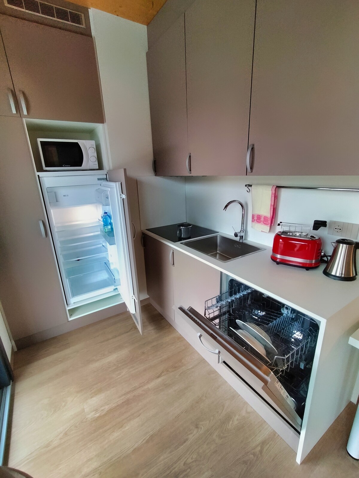 Finemente arredato in stile moderno con materiali garantiti bio, dalle pavimentazioni ai tessili, dispone di una camera matrimoniale, zona giorno con divano letto e cucina, servizi. Aria condizionata e riscaldamento, WiFi, TV sat, posto auto privato, piccolo giardino privato e veranda. Non c’è porta nella camera da letto Il Loft Standard fa parte del Lamasu Wellness&Resort, residence composto da 11 appartamenti