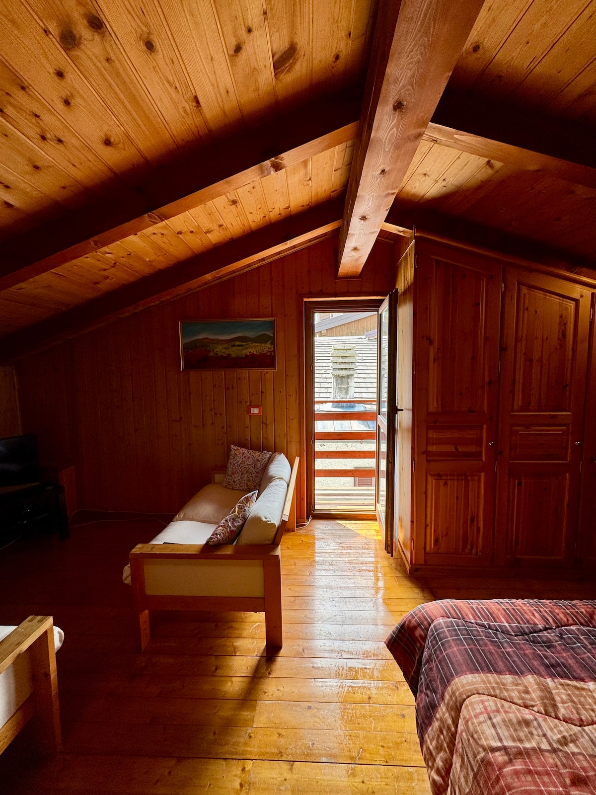 Luxury Chalet Maria located in the heart of the stunning Val di Peio, in the charming village of Celentino. This enchanting location offers breathtaking views of the Ortles Cevedale mountain range. This elegant residence provides a comfortable and modern living environment with a touch of Alpine style. The apartment features two spacious bedrooms and a finely finished bathroom equipped. The kitchen and living room blend into a bright open space, creating a cozy atmosphere with a modern design.