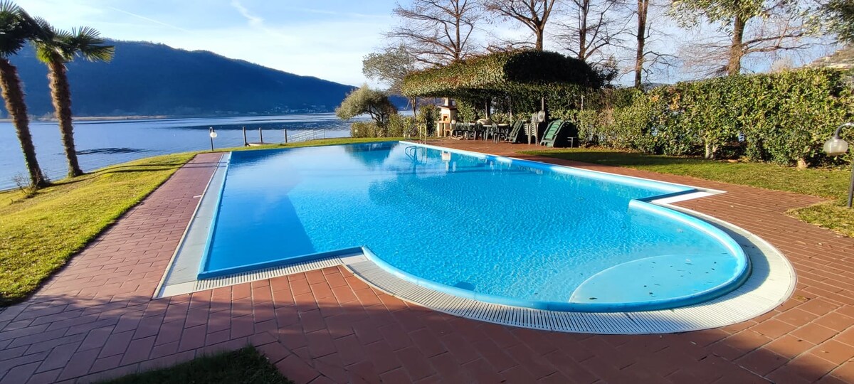 在加尔达湖畔的绿色环境中放松身心,享受游泳池带来的乐趣